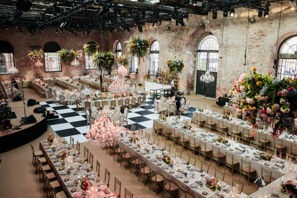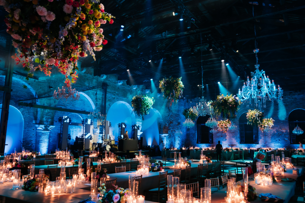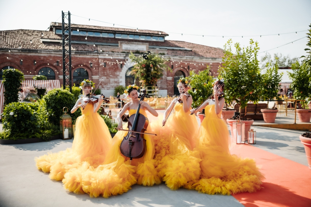 Il giorno successivo, l’iconico Arsenale di Venezia ha aperto le sue porte a una celebrazione che sembrava un sogno ad occhi aperti. Gli antichi archi in mattoni sono stati trasformati in un giardino sospeso di fiori, mentre gli spazi all’aperto evocavano l’incanto di un’estate italiana, tra eleganza e poesia.