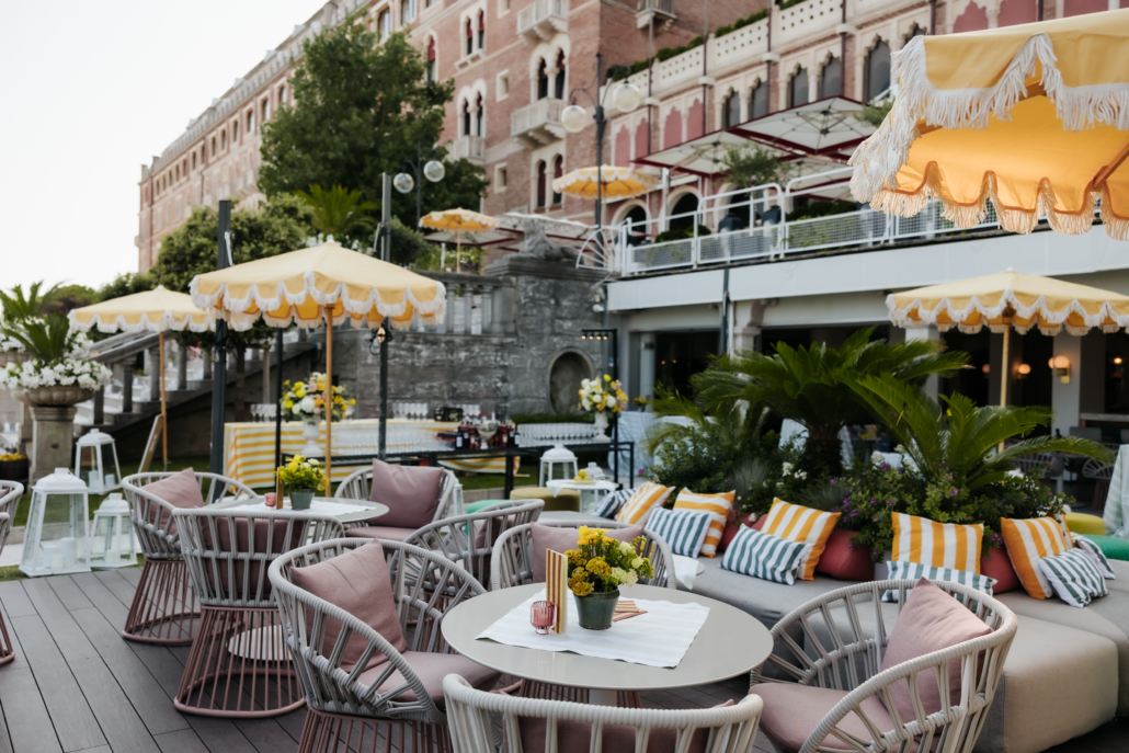 Al tramonto, l’atmosfera si è trasferita all’Hotel Excelsior al Lido di Venezia per il ricevimento di benvenuto. La terrazza sul mare vibrava di gioia: cocktail colorati, musica dal vivo e chiacchiere sotto gli ombrelloni gialli hanno reso la serata un preludio perfetto alla grande festa, con il cielo che si tingeva di sfumature dorate.