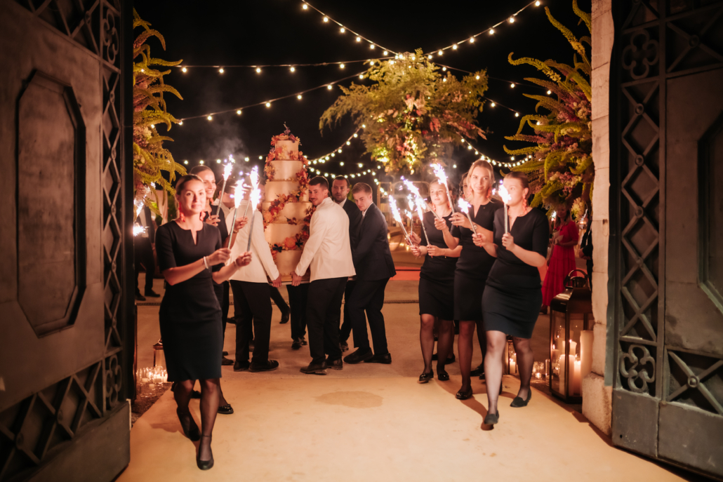 La serata ha intrecciato culture e talenti da tutto il mondo: catering austriaco, produzione audio-visiva svizzera e il tocco prezioso dei migliori artigiani italiani. Tra le note di un quartetto d’archi in abiti dorati e l’energia travolgente di Alessandro Ristori, la festa ha preso vita in un crescendo di emozioni, celebrando non solo un’unione, ma l’amore stesso.